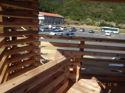 室戸市の中学校跡地に発足した、世界ジオパークセンターの国道56号線に面した一角に建設しました。センターのトイレ等も利用できます。当会の小屋建設地探しを知った25番 金剛頂寺の坂井智宏住職が、センターの整備を担当している「NPO室戸を元気にする会」の樽本理事長に話し、行政をを含めて建設が実現しました。 歌さんの設計コンセプトは、室戸の三角形の地形と2階からの【空と海】の眺望で、防波堤を越えて太平洋の水平線が見えるように2階建てにしました。 完成した小屋は室戸市に寄贈し、管理運営は「NPO室戸を元気にする会」が担当して下さいます。 |